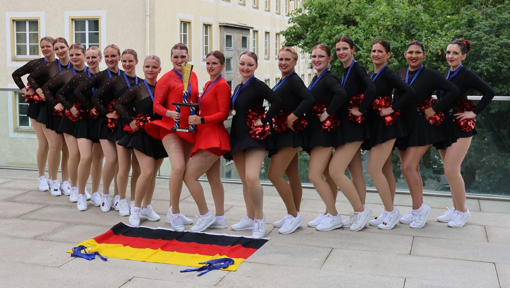 Seit 3 Jahren bin ich Mitglied einer Cheerleading Dance Crew mit der wir 2024 Vize-Europameister